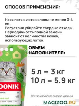 Комкующийся наполнитель Zoonik для кошачьего туалета изготовленный из экологически чистых натуральных компонентов, обладает приятным ароматом зеленого чая и не содержит искусственных добавок.