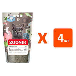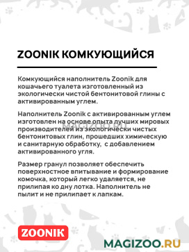 Комкующийся наполнитель Zoonik для кошачьего туалета изготовленный из экологически чистой бентонитовой глины с активированным углем.