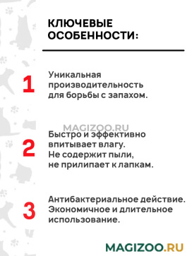 - Не содержит пыли, не прилипает к лапкам.
