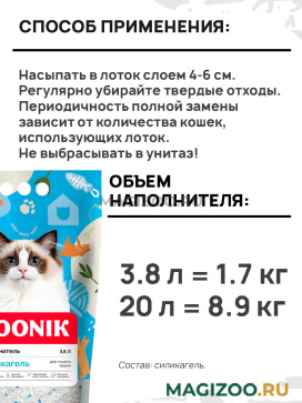 Силикагелевый наполнитель Zoonik для кошачьего туалета, представляет собой особую форму диоксида кремния, прошедшую термическую и санитарную обработку.