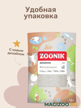 Наполнитель Zoonik впитывающий обладает бактерицидными свойствами, а так же абсолютно безопасен для окружающей среды.