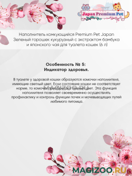 Кукурузный комкующийся наполнитель с экстрактом бамбука и японского чая Premium Pet Japan для туалета Вашего питомца.