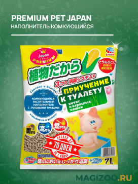 Растительный комкующийся кукурузный наполнитель с ароматом луговых трав Premium Pet Japan для туалета Вашего питомца.