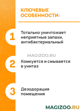 - Устраняет самые сильные запахи мочи и фекалий.