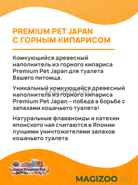 Комкующийся древесный наполнитель из горного кипариса Premium Pet Japan для туалета Вашего питомца.