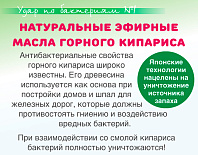 Натуральные эфирные масла горного кипариса, антибактериальные свойства которого хорошо известны. Его древесина используется как основа для постройки домов и шпал для железных дорог, которые должны противостоять гниению и воздействию вредных бактерий.