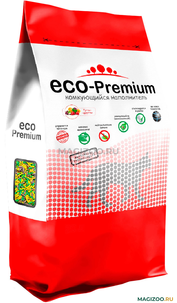 Наполнитель ECO-Premium изготавливается из органических волокон хвойных пород деревьев по запатентованной Австралийской формуле и технологии производства, которая позволяет полностью нейтрализовать неприятные запахи, сформировать плотный комок и обеспечивает антибактериальный эффект.