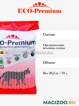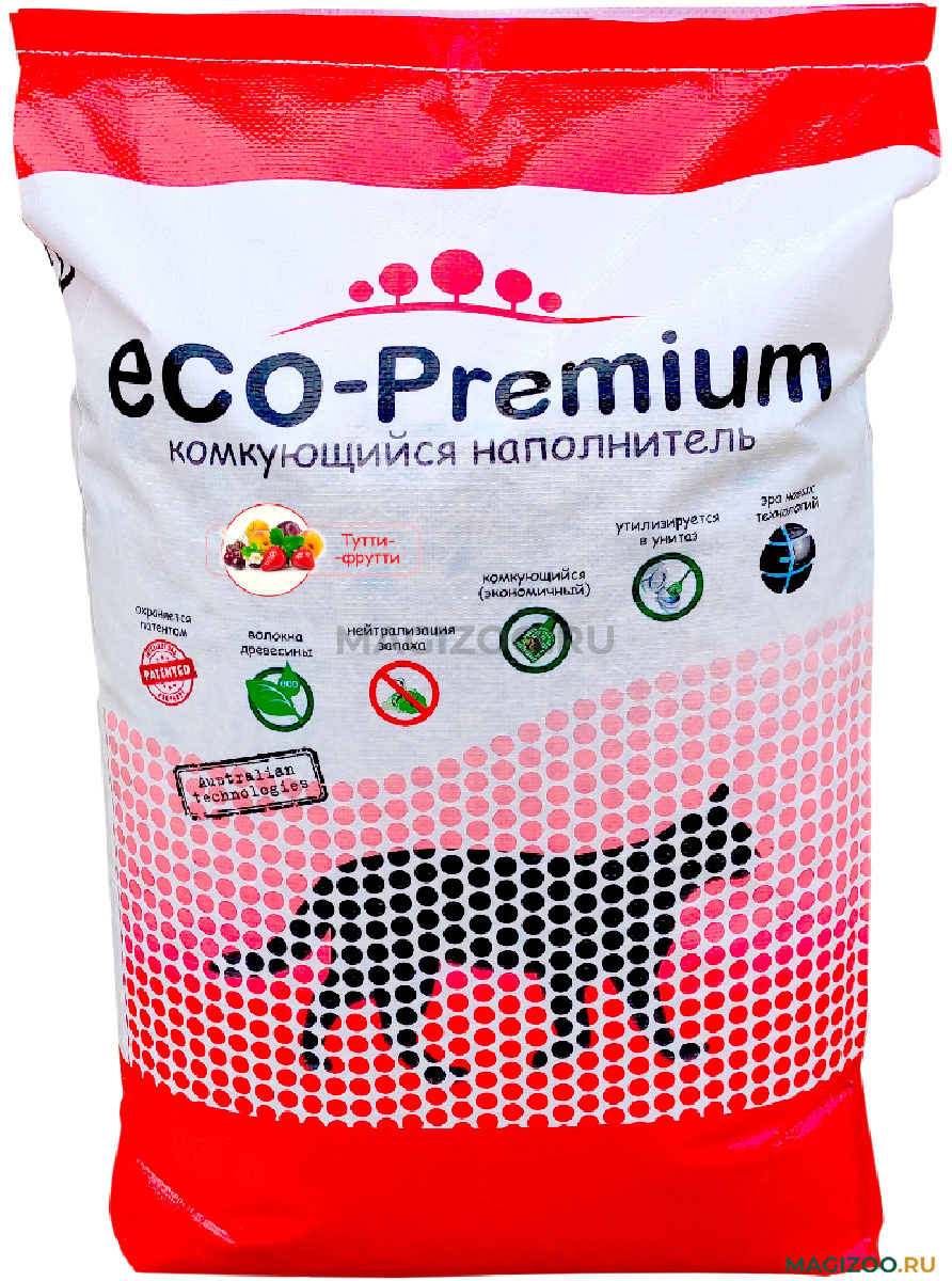 Наполнитель ECO-Premium изготавливается из органических волокон хвойных пород деревьев по запатентованной Австралийской формуле и технологии производства, которая позволяет полностью нейтрализовать неприятные запахи, сформировать плотный комок и обеспечивает антибактериальный эффект.