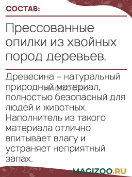 В состав наполнителя входит природный антисептик – сосновая кора.
