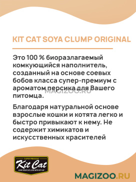 Все материалы, входящие в состав наполнителя KIT CAT SOYA CLUMP, биоразлагаемы и не содержат веществ, причиняющих вред природе и окружающей среде.