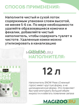 Наполнитель SNOW Peas (Снежный горох) имеет круглую форму, а не цилиндрическую форму. Это позволяет быстрее впитывать больший объём жидкости и избегать появление запаха.