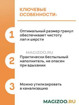 Оптимальный размер гранул обеспечивает чистоту лап и шерсти.