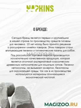 Российский бренд Napkins - это современные средства гигиены, обеспечивающие комфорт и чистоту Вам и Вашему питомцу!
