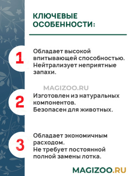 При попадании влаги наполнитель образует плотный комок и надежно запирает в нем неприятные запахи.