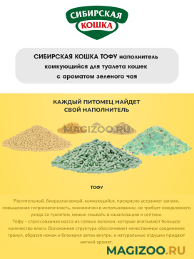 Комкующийся наполнитель из спрессованных соевых волокон с ароматом зеленого чая.