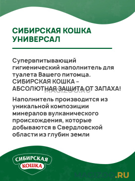 Супервпитывающий гигиенический наполнитель для туалета Вашего питомца. СИБИРСКАЯ КОШКА – АБСОЛЮТНАЯ ЗАЩИТА ОТ ЗАПАХА!
