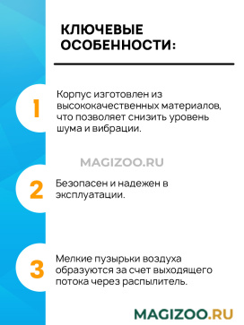 Особенности компрессора: простое обслуживание, двухканальный, насыщение воды кислородом.