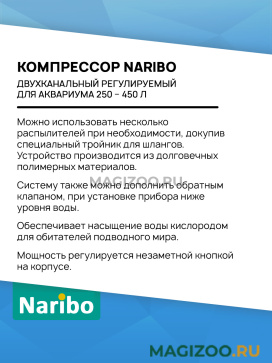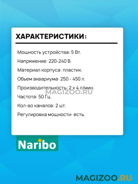 Компрессор Naribo предназначен для насыщения воздухом воды в аквариуме.