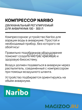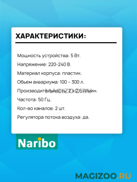 Информация о составе и ингредиентах, цветовом решении, технических и иных характеристиках, стране-изготовителе, внешнем виде и комплекте поставки товара носит справочный характер и основана на последних доступных к моменту публикации сведениях. Доставка данного товара осуществляется во все регионы РФ.Naribo предлагает большой ассортимент аквариумных аксессуаров. Вы найдете всё для обслуживания аквариума, от распылителя до сифона, в оптовых, розничных и красочных упаковках.