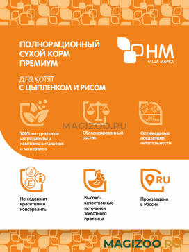 Бренд НАША МАРКА – это команда профессионалов, высокое качество продукции, современные технологии производства кормов, инновационный подход во всех областях работы предприятия. Корма Гатчинского комбикормового завода всегда отличаются высоким качеством, натуральными ингредиентами и разумной ценой.