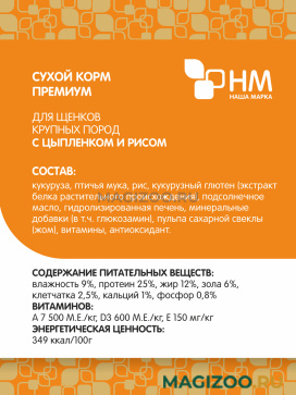 Сбалансированный сухой корм для щенков крупных пород с цыпленком и рисом.