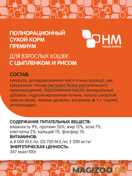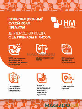 Бренд НАША МАРКА – это команда профессионалов, высокое качество продукции, современные технологии производства кормов, инновационный подход во всех областях работы предприятия. Корма Гатчинского комбикормового завода всегда отличаются высоким качеством, натуральными ингредиентами и разумной ценой.