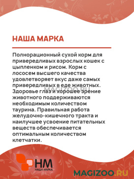 Бренд НАША МАРКА – это команда профессионалов, высокое качество продукции, современные технологии производства кормов, инновационный подход во всех областях работы предприятия. Корма Гатчинского комбикормового завода всегда отличаются высоким качеством, натуральными ингредиентами и разумной ценой.