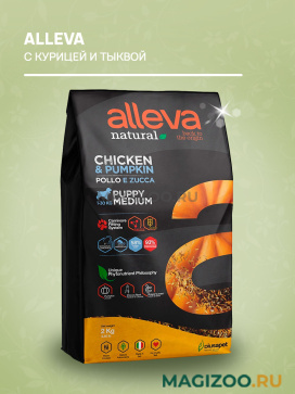 В состав кормов Alleva входят мясо или океаническая рыба, инулин и бурый рис. Сушеная тыква выступает источником растворимой клетчатки. Витаминно-минеральная добавка насыщает организм животного полезными веществами, оказывает укрепляющее воздействие на суставы. Деликатная обработка паром позволяет сохранить в продукции максимальное количество полезных компонентов.