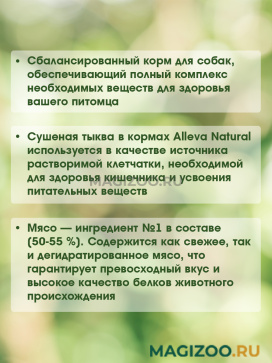 Сушеная тыква в кормах Alleva Natural используется в качестве источника растворимой клетчатки, необходимой для здоровья кишечника и усвоения питательных веществ.