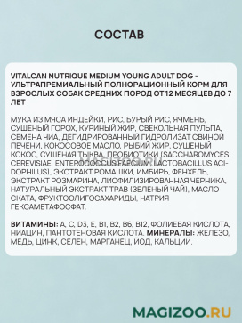 Vitalcan Nutrique Medium Young Adult Dog - ультрапремиальный полнорационный корм для взрослых собак средних пород от 12 месяцев до 7 лет.