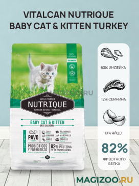 Vitalcan Nutrique Baby Cat & Kitten - ультрапремиальный полнорационный для котят до 12 месяцев, беременных и кормящих кошек с индейкой.