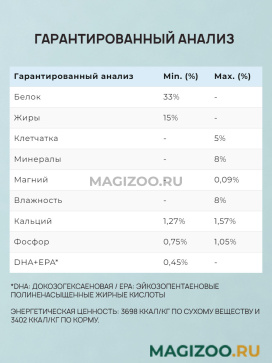 Информация о составе и ингредиентах, цветовом решении, технических и иных характеристиках, стране-изготовителе, внешнем виде и комплекте поставки товара носит справочный характер и основана на последних доступных к моменту публикации сведениях. Доставка данного товара осуществляется во все регионы РФ.Ее цель — улучшение жизни домашних животных посредством разработки, производства, продажи и распространения лучших комплексных питательных решений.