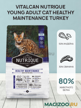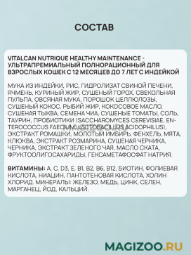 Vitalcan Nutrique Healthy Maintenance - ультрапремиальный полнорационный для взрослых кошек с 12 месяцев до 7 лет с индейкой.