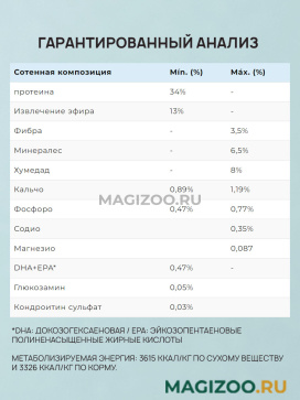 - Низкий уровень натрия и фосфора в корме обеспечивает поддержку здоровья сердца и почек.
