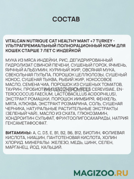 Vitalcan Nutrique Cat Healthy Mant +7 Turkey - ультрапремиальный полнорационный корм для кошек старше 7 лет с индейкой.