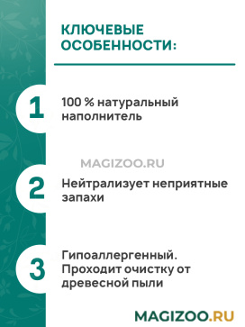 Рекомендации по применению: Насыпать равномерным слоем 2-5 см. Менять подстилку по мере загрязнения. Не требует особых способов утилизации и после применения могут быть использованы в качестве удобрения.