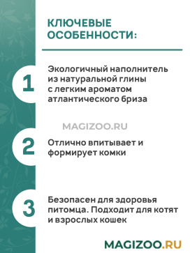 Гранулы наполнителя Organix созданы из натуральной бентонитовой глины, которая легко формирует прочные комки при контакте с жидкостью. Благодаря своим природным свойствам бентонит прекрасно поглащает запах.