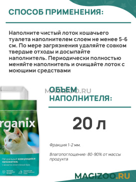 С наполнителем Organix легко поддерживать чистоту кошачьего лотка! Образовавшиеся комочки удаляются совком и не прилипают ко дну лотка, позволяя экономично расходовать наполнитель.