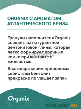 Гранулы наполнителя Organix созданы из натуральной бентонитовой глины, которая легко формирует прочные комки при контакте с жидкостью. Благодаря своим природным свойствам бентонит прекрасно поглащает запах.