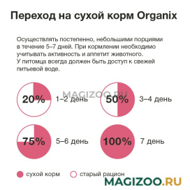 100 % натуральный, Organix не содержит никаких искусственных добавок и ГМО, а так же пшеницу, сою и субпродукты, зато содержит много полезных и питательных веществ для укрепления здоровья Вашего четвероногого друга!
