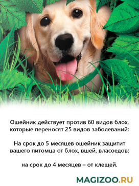 На срок до 5 месяцев ошейник защитит вашего питомца от блох, вшей, власоедов;