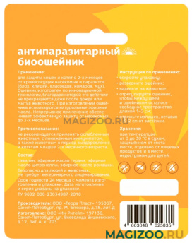 Антипаразитарный БИОошейник для защиты кошек с 2-х месяцев от кровососущих насекомых и паразитов.