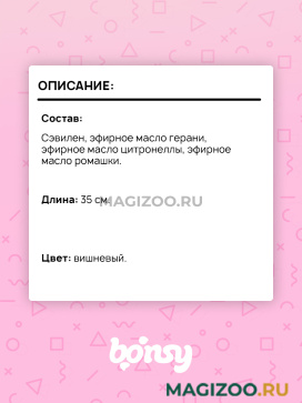 При изготовлении ошейника использованы натуральные эфирные масла.