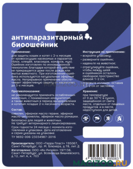 При изготовлении ошейника использованы натуральные эфирные масла.