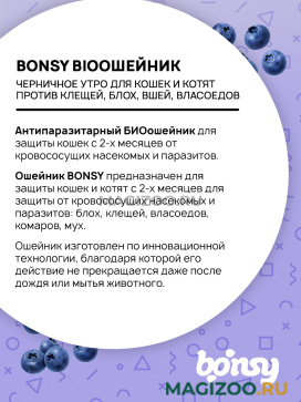 Ошейник BONSY предназначен для защиты кошек и котят с 2-х месяцев для защиты от кровососущих насекомых и паразитов: блох, клещей, власоедов, комаров, мух.