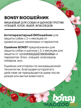 Ошейник BONSY предназначен для защиты собак и щенков с 2-х месяцев для защиты от кровососущих насекомых и паразитов: блох, клещей, власоедов, комаров, мух.