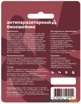 Антипаразитарный БИОошейник для защиты собак с 2-х месяцев от кровососущих насекомых и паразитов.