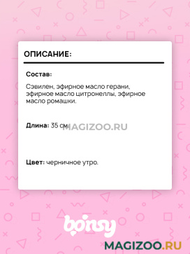 При изготовлении ошейника использованы натуральные эфирные масла.