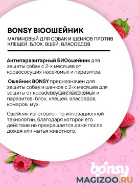 Ошейник BONSY предназначен для защиты собак и щенков с 2-х месяцев для защиты от кровососущих насекомых и паразитов: блох, клещей, власоедов, комаров, мух.