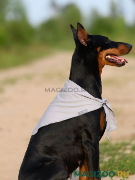 Косынка охладжает шею животного, а завязки помогают регулировать размер.